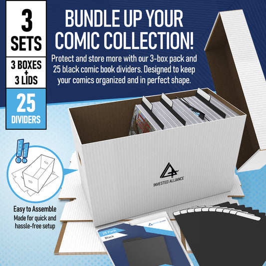 3 Pack - Comic Book Storage Boxes & White Dividers Bundle