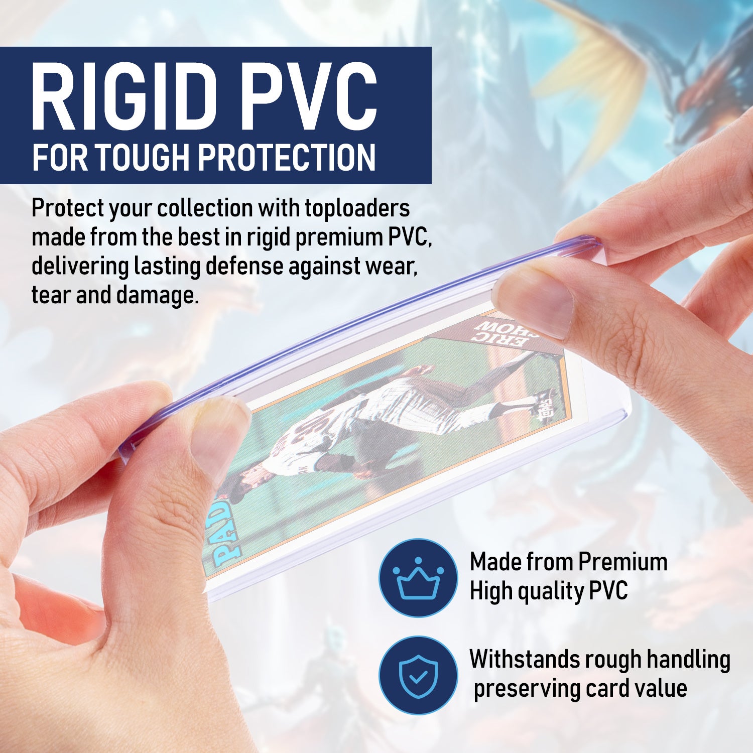 - Premium High quality PVC: Reliably protect your trading cards from scratches, blemishes and abrasions with our card top loader. Hard card sleeves that you can trust!