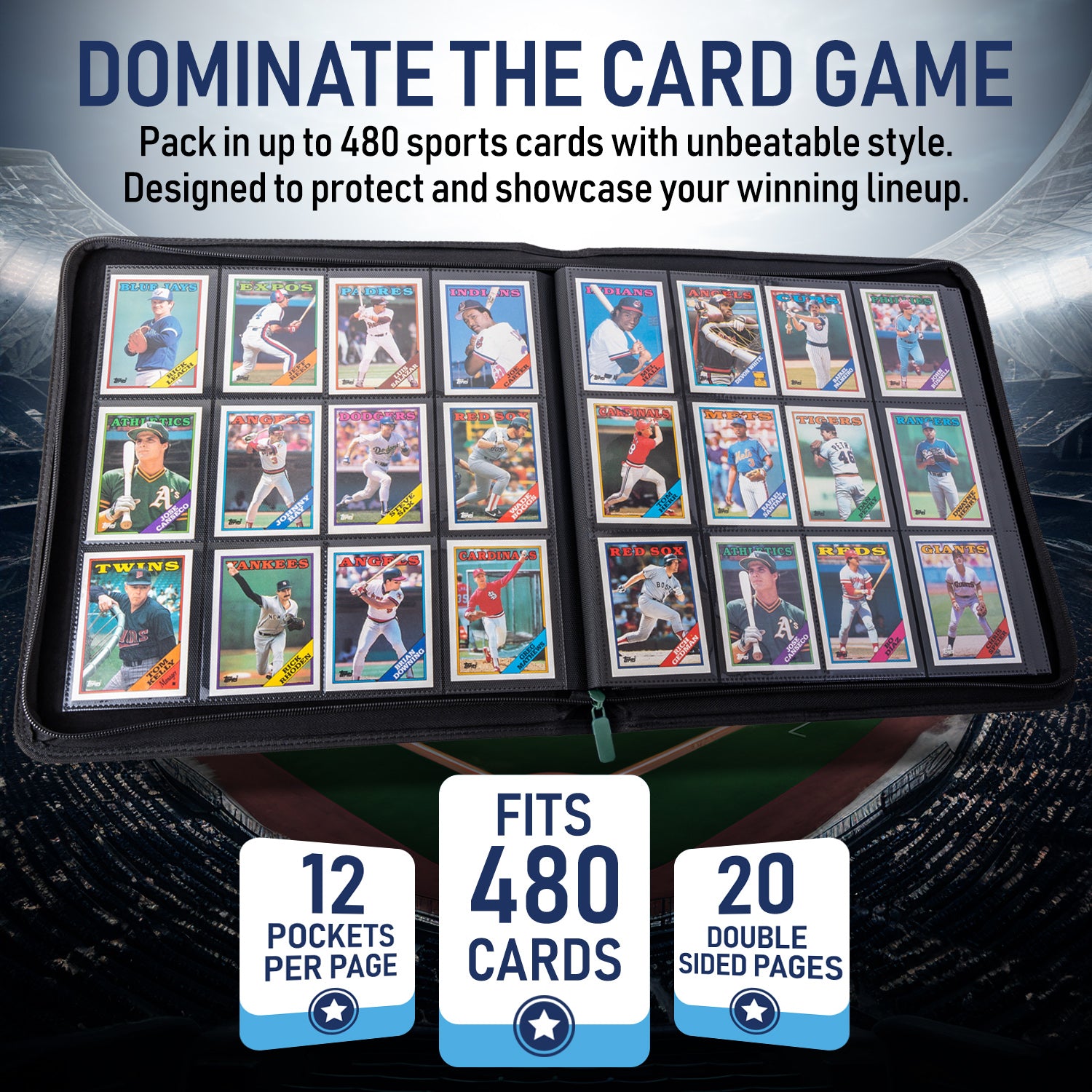 - Trading card binder 12 pocket per page and 20 double-sided pages that fits 480 trading cards. Hockey trading card binder, NFL trading card binder, card binder mtg, card binder and collector card binder.