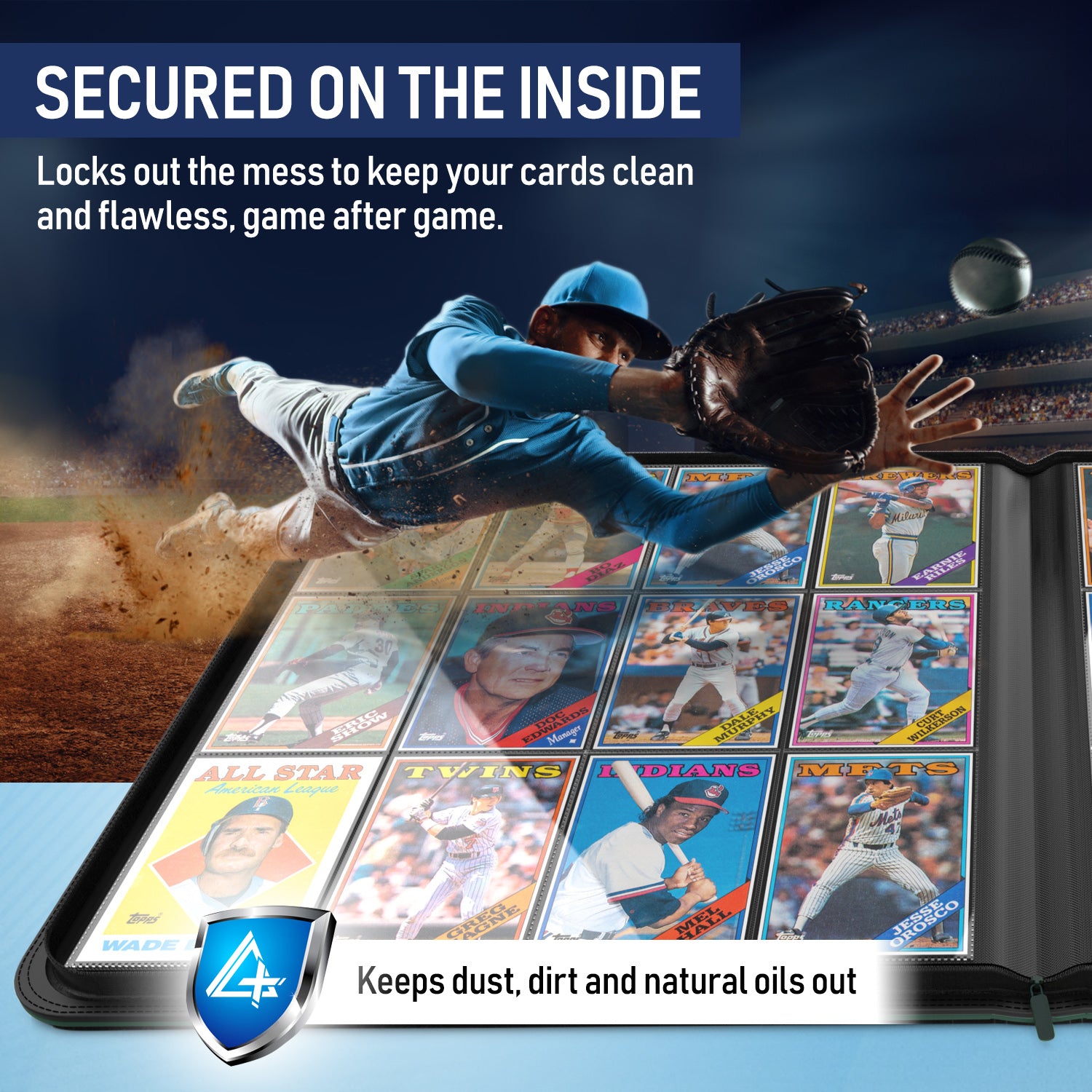 - Premium green trading card binder with zipper closure - Our binder is built to last for years to come with a water-resistant and non-slip cover.