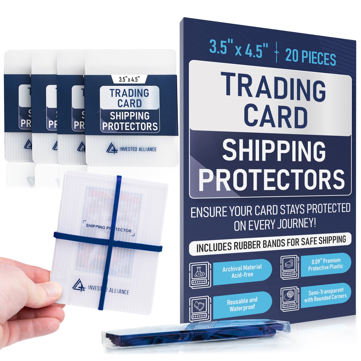 - Trading Card Shipping Protector Bundle Pack: You will receive 20 shipping protectors and 20 rubber bands to be able to ship 10 total trading cards in card mailers.